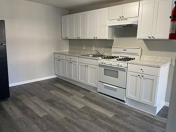 Completely rehabbed first floor apartment with private entrance and patio. Brand new kitchen, bathroom, vinyl flooring and completely painted! This unit will be ready for a new tenant June 1st! Rent includes electric, water, sewer, trash. Tenant only pays propane heat. 12 month lease.