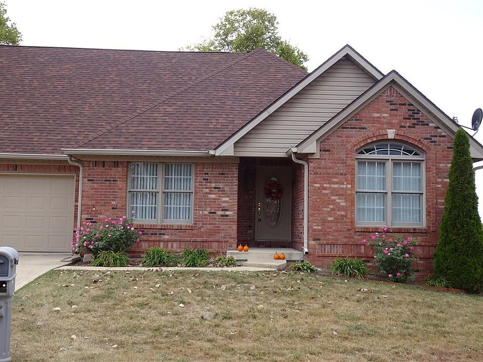 Clean and well kept brick condo with 2 bedrooms, 2 full baths, living room and dining room. Neutral colors. Living room and 2nd bedroom have raised ceilings. Kitchen is open to living room and dining room. Beautiful country view from deck! Let someone else take care of your outside maintenance! Seller is offering a 1 year home warranty.
