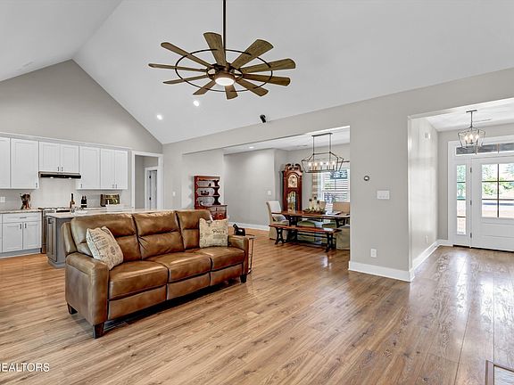 Discover your serene retreat in this stunning all brick, Modern Farmhouse, nestled on 1.12 tranquil acres with a crystal-clear stream flowing directly to the Holston River. Located in the peaceful Lyons Creek neighborhood, this 3-bedroom, 2.5-bath home offers the perfect blend of rustic charm and modern elegance. Step inside to an open concept living space highlighted by elegant engineered hardwood floors, 18ft vaulted ceilings, and a beautifully designed kitchen featuring granite countertops, a large island, a gas stove, and a spacious walk-in pantry. The master suite is your personal oasis with a massive soaking tub, a tiled shower, and direct access to a walk-in closet and laundry. Secondary bedrooms are generously sized, and the bonus room provides extra flexibility for your needs. Enjoy the outdoors on your large covered back porch, surrounded by the beauty of nature. For an added bonus the crawlspace is encapsulated. Don't miss this opportunity to own a piece of paradise in Lyons Creek!