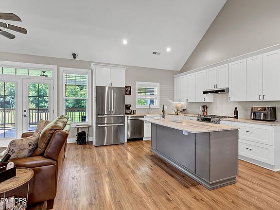 Discover your serene retreat in this stunning all brick, Modern Farmhouse, nestled on 1.12 tranquil acres with a crystal-clear stream flowing directly to the Holston River. Located in the peaceful Lyons Creek neighborhood, this 3-bedroom, 2.5-bath home offers the perfect blend of rustic charm and modern elegance. Step inside to an open concept living space highlighted by elegant engineered hardwood floors, 18ft vaulted ceilings, and a beautifully designed kitchen featuring granite countertops, a large island, a gas stove, and a spacious walk-in pantry. The master suite is your personal oasis with a massive soaking tub, a tiled shower, and direct access to a walk-in closet and laundry. Secondary bedrooms are generously sized, and the bonus room provides extra flexibility for your needs. Enjoy the outdoors on your large covered back porch, surrounded by the beauty of nature. For an added bonus the crawlspace is encapsulated. Don't miss this opportunity to own a piece of paradise in Lyons Creek!