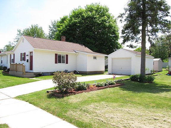 MOVE-IN CONDITION! Updated 2 BR, 1 BA home features fresh paint, new carpet, remodeled bathroom, new refrigerator, and more! Low maintenance vinyl siding. Enjoy the eat-in kitchen and main floor laundry. Full basement. Garage has new OSB plywood walls, new windows, and concrete driveway for off street parking. Nicely landscaped yards with a beautiful maple tree. 10' x 12' outdoor storage shed included. LOW TAXES!
