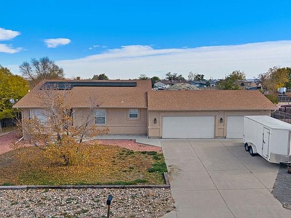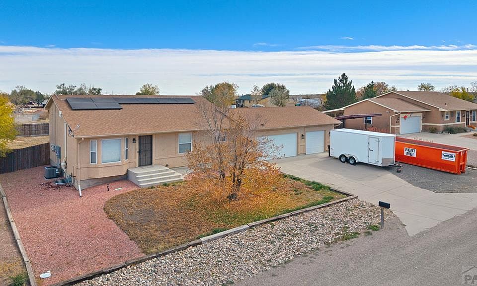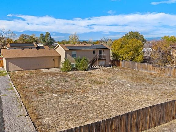 Welcome to this inviting 4-bedroom, 2.5-bath home in a desirable Pueblo neighborhood — designed for comfort, space, and easy living! Enjoy a HUGE fenced backyard with room to play, garden, or relax — plus access to park at least one RV. The oversized 3-car attached garage offers plenty of space for vehicles, tools, or projects. Inside, the main level features a bright and open living area with plenty of natural light and space to gather. Upstairs, retreat to a spacious primary suite with a private bath and balcony access with stairs leading to the backyard, providing a peaceful outdoor escape. The lower level includes two additional bedrooms and another full bath, while the unfinished basement provides abundant storage or room to grow. The seller has priced this home to sell, reflecting that carpet and flooring are not currently installed — giving you the opportunity to personalize the finishes to your taste and style. Solar panels will be paid off at closing and included in sales price offering long term savings in efficiency. This home has been lovingly maintained and offers the perfect blend of space, comfort, and versatility — ready for you to move right in!
