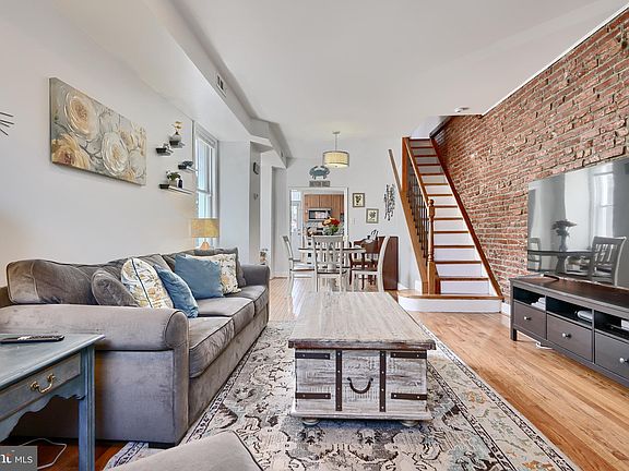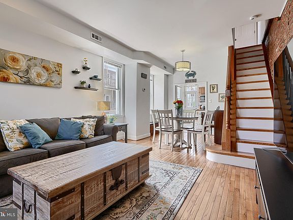 Presenting light-filled end-of-group with off-street parking in the popular Brewers Hill area. This open floor plan will be sure to please with wood floors, exposed brick, and a large kitchen offering lots of cabinet space and rear entry to the patio/parking pad. The updated upper level just recently had a new full bath and walk-in closet added, creating the perfect floor plan. Your lower level offers a finished area in the front plus a half bath and spacious laundry/storage room. This home has been well cared for and is ready for its new owners. A brand new HVAC system has just been installed.