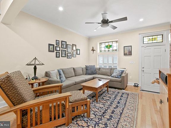 Enjoy your rear parking spot after a long day and walk into this beautiful kitchen. Instantly feel at ease as you flip on your under cabinet lights, giving a soft glow to your subway tile backsplash and gorgeous quartz counters and pour a glass of wine. Warm cherry shaker style cabinets with 42" uppers will provide tons of storage space. With an open floor plan and clean sightlines you'll love entertaining. Guests can park easily on the double wide, tree lined street and they'll be greeted with a repointed brick front home with an amazing matching set of stained glass and an upper bay window, unique to only a few streets in Canton. The entire main level and upstairs shine with new hardwood floors. The owners bedroom offers plenty of closet space and the ensuite bath has a huge walk in shower. A rear deck gives cover to your parking pad and lets you enjoy beautiful sunsets. It could easily be built upwards to give spectacular views of Patterson Park. The basement is a great balance of finished and storage space. It could easily be a 3rd bedroom as there is a half bath and rear walk up door. It currently functions as a crafting room and library. This gorgeous home was painstakingly renovated using the best high end materials while adhering to CHAP tax criteria. Low energy bills are also an added bonus as spray foam insulation was used for the entire roof and between neighboring walls where possible and the furnace is a high efficiency model. CHAP tax runs through 2027 saving thousands in taxes!