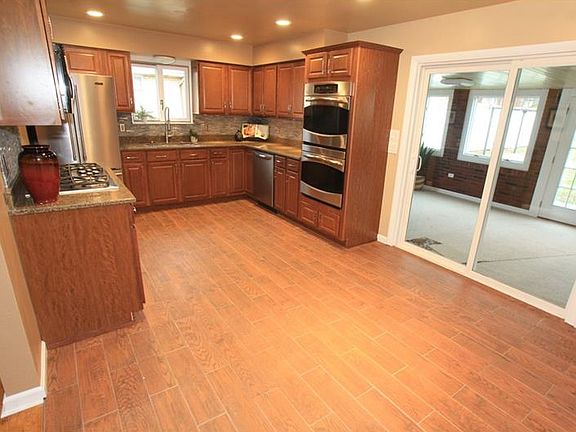 Completely Updated Brick Contemporary! Move Right in! Updated Kitchen With New Granite Counter Top, Sleek Stone Backsplash, LED Under Cabinet Lighting, Deep Restaurant Sink, 36 inch Viking Gas Cooktop, and Stainless Appliances Including Double Oven. Completely enclosed 4 season sunroom just off of the kitchen with pet friendly flooring. Both Bathrooms Have Been Updated and Given a Fresh, Modern Look. The Entire Lower Level Has Been Finished and Offers Lots of Open Space. Spacious Freshly Carpeted Family Room w/Modern Gas Fireplace. Large Finished Laundry Room. Lots of Storage Throughout. Oversized Lot w/Mostly Level Rear Yard that has Been Fenced In For Privacy. Large shed in backyard for storage. Excellent Home for Entertaining Outdoors and Inside!