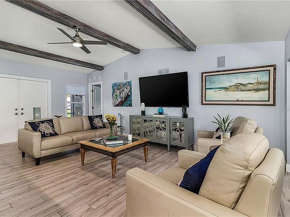 Don't be fooled by the size! You will be amazed by how LARGE this completely remodeled home lives! Remodeled with a women's touch and designer flair! NEW 30 yr. shingle & flat roof - October, 2019. Fully permitted renovations completed in 2017 include: major kitchen remodel with NEW cabinets, granite counters, breakfast bar, raised ceiling and upgraded stainless steel appliances. Both bathrooms updated with new vanities, granite counter in master & Carrara Marble in guest. NEW tiled shower surrounds. NEW beachy, wood grain tile throughout the entire home. Whole house Re-piped. UPGRADED electric panel installed. NEW H20 heater. NEW lighting & plumbing fixtures. Freshly painted in & out. NEW interior doors, trim & baseboards. Open concept floor plan with breakfast bar. SOARING ceilings in LR with wood beams for architectural flair. Natural light flooding every room gives this home great energy! NEW deck for sunbathing. Screened front and back lanai's to allow the fresh air to flow through during our amazing winter months. Location is ideal: midway to both bridges, close to shopping, dining, airports, beaches & amenities. Schedule your showing today...this one is sure to please!