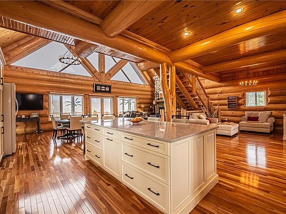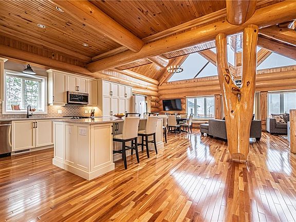 You will be welcomed into this spectacular bright open concept breath taking home right from stepping up to the new front doors. This brings you into the new custom kitchen, all new light fixtures to add to the natural light already there from dusk to dawn. Built by Coyote homes this is a one of its kind in our area. Main floor offers a mudroom, laundry room and powder room for guests. Master suite has views that cannot be compared to. Large walk in closet with built ins, and beautiful ensuite. Lower level has all new flooring, another large bedroom and elegant bathroom with shower. ICF foundation, and the log make this home exceptionally efficient. Large pool deck and pool house. Garage has a large work shop insulated and ready for projects! One acre lot just on the outskirts of town, close to shopping and everything you need with all the feel of the country. All offers must have a 48 hour irrevocable.
