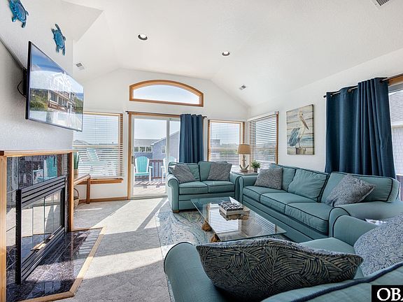 LOCATION LOCATION LOCATION! This 5 bedroom, 3.5 bath home sits nestled in lush vegetation, close to community amenities, and only a 250 yard walk to the beach access. This Carolina coastal home is the perfect slice of the Outer Banks in the sought after community of Ocean Sands. The living room on the top floor is bathed in natural light and adorned with coastal decorations. You can savor your morning coffee or evening cocktail on the rooftop deck while listening to the soothing sound of the crashing waves. Enter the spacious open kitchen, equipped with ample cabinet space, a double sink, and a kitchen island featuring seating for four on barstools for casual dining. This area is ideal for hosting guests, as it seamlessly connects to the living room. For a more formal dining experience, there is an 8-person dining table located adjacent to the kitchen. The main primary suite is located adjacent to the kitchen and features a king-size bed and access to a deck. Connected to the suite is the primary ensuite bathroom, which includes a double vanity and a tub shower. On the mid-level, you will find another primary ensuite bedroom with a bathroom that includes double sinks and a tub shower, the second bedroom featuring a bunk with twin and full mattresses and an additional twin bed with deck access, and a third bedroom featuring one queen bed and one twin bed, also with deck access. Additionally, there is a centrally located laundry room for convenient access to laundry facilities between the bedrooms. The ground level features the fifth bedroom with a queen bed, twin bed, and extra storage space, along with a dry entry into the carport area. Outside, there is a large carport, a gravel area ideal for playing corn hole or for additional relaxation space, an outdoor shower, and a patio area perfect for grilling or unwinding. Looking for a day off of the beach? No problem, you're a short walk from the 7-acre stocked fishing lake within the community and you're only a few minutes' drive from wonderful restaurants, grocery stores, and shopping centers! Schedule your showing today! IMPROVEMENTS: Hot water heaters 2019, HVAC completely updated and replaced 2020, Fortified roof installed Oct 2021, Moen Flo Smart Water Monitor and Shutoff Installed, Added Blink camera to carport, Both water expansion tanks replaced, All bathrooms updated with LVP Flooring, new toilets, paint, trim, updated lighting, LVP flooring in Kitchen, Outdoor electrical receptacles replaced and waterproof covers replaced, Outdoor water spigots replaced with freeze proof sillcocks, Pressure relief valves on hot water tanks replaces all in 2023. In 2024 for the following were done: Rolled seamless 6" gutters with downspouts to direct water off house, Chimney resided with paint matched cedar shakes and pvc trim boards, Upper deck southern side, and front side of house above front entry roof resided with paint matched cedar shakes, Replaced beauty band on front of house above front door porch roof with PVC board, Replaced rotten cedar trim boards with 5/4 PVC trim around windows, All rusted carriage bolts on pilings were replaced, Replaced mirror in powder room and added quartz stone ledger.