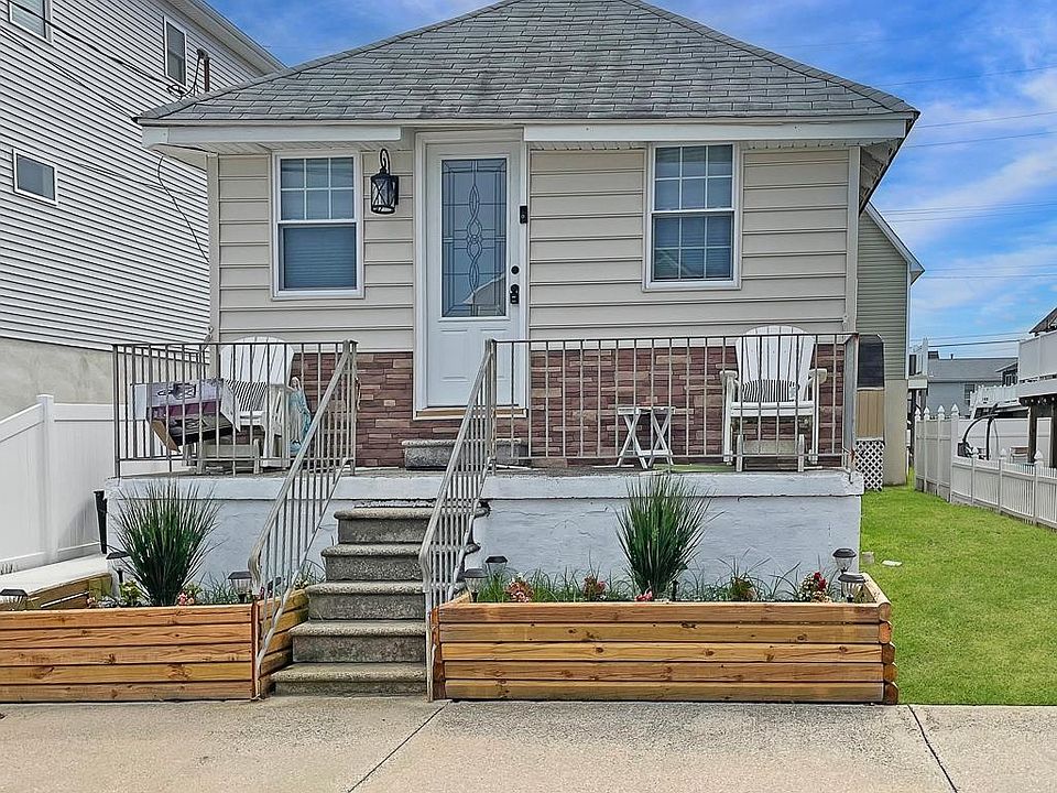 Beautifully renovated single/detached home situated just steps from the bay in quiet West Wildwood with rare driveway that provides off-street parking. Arrive and you will immediately picture yourself relaxing on your front porch. Enter to find luxury vinyl plank flooring & fresh paint throughout. The main living area offers a spacious living room with ceiling fan, recessed lights & electric fireplace. Continue to find 3 bedrooms, all with ceiling fans, and a spa-like bathroom with stall shower that has a beautiful subway tiled surround & bench, nice vanity & toilet. Thee rear of the home hosts a gourmet kitchen complete with an abundance of new cabinets & granite counter space, all new stainless-steel appliances including electric range, built-in microwave & dishwasher, refrigerator & nice skylight, and open concept to the dining area with nice chandelier. Off the kitchen is the master bedroom with vaulted ceilings, ceiling fan, storage closet & hosts the washer & dryer as well as the master bathroom nicely tiled floors, shower & soaking tub combo with beautiful subway tiled surround, vanity & toilet. The rear of the has a nice yard with storage shed that is included. Additional features are all new windows, updated electric service, new electric baseboard heaters, and the list can go on. Conveniently located just a short walk to the bay, playground, and great restaurants. ***Finishing work is still being completed & details being buttoned up***
