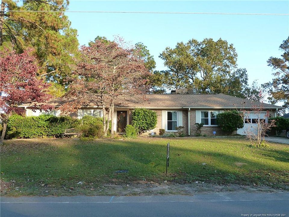 Looking for a large spacious home Just outside of Fort Bragg! Brick 3 bedroom 2 bath home perfect for entraining family and friends! Large Formal Living room & Dining room just off the the remodeled kitchen with eating area. Kitchen has tons of cabinets, Island, SS Range, Microwave, dishwasher, refrigerator. Bay Nook area with vaulted ceiling. Sunroom comes off the the family room with cozy fireplace. Huge Master bedroom with large walk-in, a 2nd closet and private master bath. Real Wood floors in Entry, Formal Living Room, Hallway. All windows were replaced with Vinyl Windows, HVAC & New roof in 2006 & 2 hot water heater in 2016. Enjoy relaxing on the oversize deck in this fenced back yard with shed. Lots of storage in the garage!