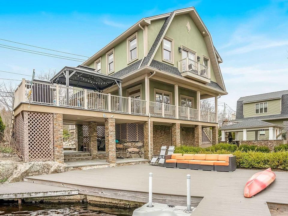 This lakefront custom home built in 2016 has hardwood flrs, recessed lighting, crown molding with accent lighting in every room. entrance mudroom with custom shelving. stunning kitchen with granite countertops, stainless steel, and access to beautiful deck overlooking lake. There is a large dining room, half bath and fam room with views of the lake throughout. Three bedrooms are upstairs including the master bedroom with massive walk in closet, custom shelving, a marble bath with custom double sink vanity, exterior recessed and soffit lighting and beautiful views o the lake. There are 2 lg additional bedrooms with oversized closets and laundry upstairs. outside - A dock with a jet ski ramp & room for boat, extensive landscaping and sod lawn, a gazebo with f/p & custom granite countertops bar, electric, and accent lighting, 24x20 garage with heated room upstairs and sink ,waterproof wrap around trex decking, central vac and so much more - this is your dream lake home
