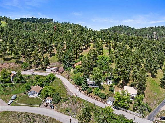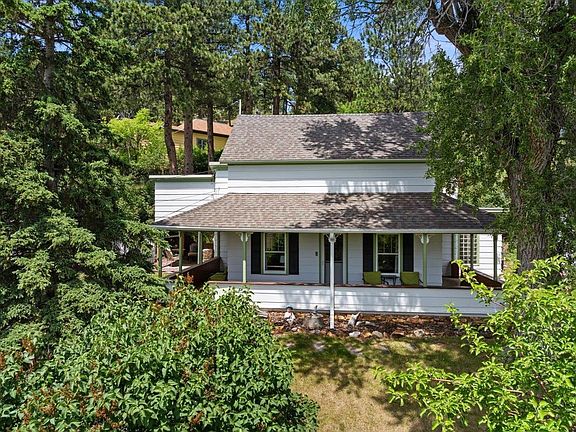 This home could be your year-round residence or a vacation rental. Owners can enjoy this beautiful location overlooking the scenic Homestake Cut and the surrounding Black Hills forest. This home is adjacent to Homestake land and the Homestake Trail for adventurous outdoor activities. The backyard features tiered landscaping with steps to access the level areas with the hillside and lot adorned with wild poppies and other wildflowers adding natural beauty. The property includes two historic mining shacks, perfect for history enthusiasts, a large shed for outdoor supplies and tools, and a single-car garage with remote control access. The home boasts an expansive wraparound covered porch for your enjoyment to relax and watch the beauty or enjoying the covered patio. Upon entry, you'll find beautiful hard wood floors, high ceilings, and wood ceilings.. The updated kitchen features lovely cabinets and newer appliances. The main level includes a laundry area, kitchen, dining and large living area with extra room for main level bedroom with closets. there are two bedrooms upstairs, offering plenty of space and comfort. The unique character of the home adds comfort and enjoyment along with the history of the area. Call Sandy Donahue 605-645-7860 Re/Max In The Hills for your private showing!