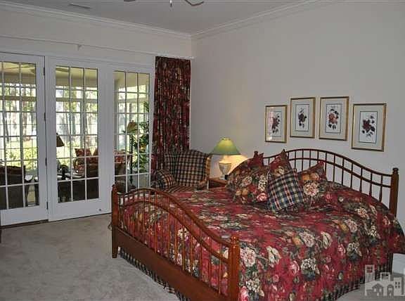 Meticulously maintained brick home offers one level living with a flowing floor plan, 10 ft ceilings & 8 ft doors throughout & oak hardwood floors in the main living areas. The large glass sunroom offers year round living w/expansive views of the entire 7th fairway & mature landscaping. Other rooms include the formal dining room, spacious living room w/gas log fireplace & a bright kitchen w/sunny breakfast area overlooking golf course. Master suite includes french doors opening to the sunroom, walk-in closet & master bath complete w/jacuzzi tub, separate tiled shower & his & her vanities w/raised counters. This is low-maintenance living at its best w/the yard maintained by the HOA & deeded water access to the neighborhood's pier, boat ramp & picnic area on the ICWW. Negotiable full membership to Porters Neck Country Club, which offers outstanding amenities including award winning Tom Fazio Golf Course, 7 hydro-clay tennis courts, 3 outdoor pools & elegant clubhouse.