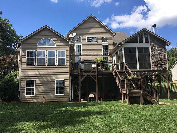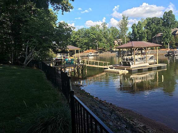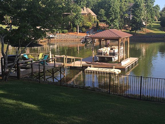5 bedrooms, 4.5 baths, master on main, bonus room with bamboo flooring, morning room, deck and screened back porch with wood burning fire place. Additional Deck over the water connected to covered dock with boat lift, cleared back yard which is fenced and landscaped, as well as entire yard with irrigation system