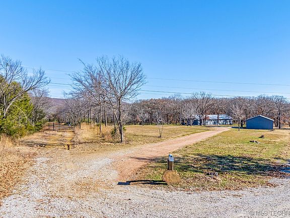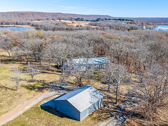 Rare Opportunity to own Okmulgee Lake Front property!! Currently income producing as an AirBB. It would also make a great primary residence or 2nd home for getaways! This home sits on 2.5 acres m/l that is partially wooded. It is a 2 Bed/1Bath with 1536 sq ft of living space. It has an open floor plan and comes with all kitchen appliances. The living room has vaulted ceilings and the cement floors have been refinished. It includes a detached double car garage that could work as a shop building. You have access to a private boat ramp and cleared waterfront picnic area. The home is all electric and on Rural water but has 2 water Wells and additional Septic in place on property. Ecolink Internet available! Add a private boat dock and you will be all set!! Plenty of wildlife in this area including Turkey and Deer. Don't miss out on this property!! Located 45 min South of Tulsa.
