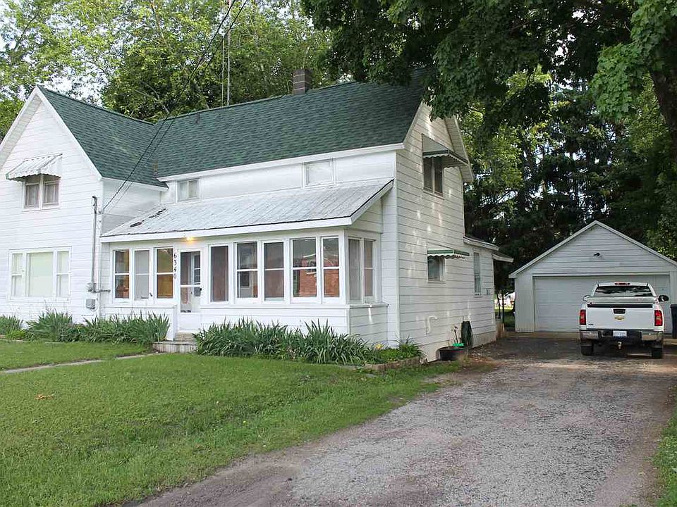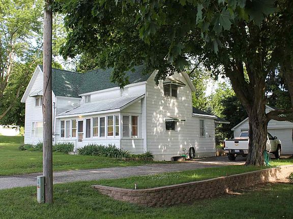 Very spacious two story home boosting nearly 1,800 sq ft. of living area. Home offers a main floor master bedroom as well as a full bath on the main floor. A large enclosed front porch 22 feet long for you to enjoy with views of Ellsworth Lake as well as a large laundry room located on the main floor. The home has new natural gas furnace for heating on the colder days and a new central air conditioning system to enjoy on the warmer summer days. A new roof was put on recently and there is a very large 2 stall detached garage for your vehicles and a nice concrete driveway. The home is located in the Village of Ellsworth located close to the boat launch, waterfront park and public pavilion. All of this on a double corner lot with beautiful mature trees to shade your home and lawn.