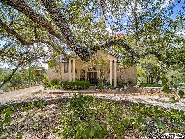 A life-in-the-country haven! Secluded 13+/- acre horse and wildlife property with incredible hilltop views in excellent Comal ISD! Lovely, well-designed 3,190 sf custom 4 bedroom/3.5 bath home including spacious patios with upper balcony for unbelievable panoramic sunsets, star-filled views and wildlife in every season! The property is perimeter fenced with a private electric front gate at the entrance on FM 311. Property has a seasonal pond, mature oaks, and tree-covered areas for wildlife habitat. The acreage currently carries a wildlife tax exemption with abundant wildlife! Ideal for show animals and livestock projects with six horse stalls in two well-equipped barns with a concrete wash rack and multiple turn-out pens and pasture area for grazing. Additional facilities for show poultry and rabbits and a well-designed 2-part chicken coop that is plumbed with hot water and electricity. The property can handle all your equipment with ease - RV hookup, storage sheds and covered storage for boats and tractors. This is a legacy property -the restrictions allow for additional dwellings to be built and a wonderful building site is just waiting for you. Call for a private showing of this rare gem in the Texas Hill Country!