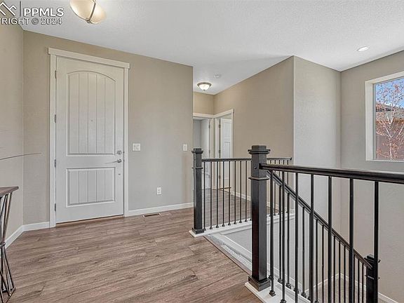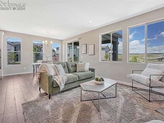 Introducing a one owner Telluride paired patio home in Wolf Ranch. This 4-bedroom, 4 bathroom home with a 2-car garage offers an unparalleled blend of luxury and comfort. The kitchen is a chef's delight, featuring white maple cabinets with crown molding, sleek quartz countertops, stainless steel appliances, and a gas cooktop. A large island overlooking the dining and living room completes the open space. The primary suite is a retreat with a stylish barn door to the master bath with walk in shower. Enjoy the convenience of air conditioning and custom wood closet shelving throughout. The finished basement is a highlight, boasting the Classic Homes upgrade of 1-foot taller ceilings, a wet bar, two additional bedrooms, two bathrooms, and a recreation room with a gas fireplace. This space is perfect for entertainment. Exterior living is just as impressive with an expanded, covered patio, an iron fence with a gate, and a convenient gas line for outdoor cooking. A scenic walkway just outside the gate of your backyard leads directly to Wolf Lake, surrounded by hiking and biking trails, and you're just moments away from premier shopping destinations. This home is in impeccable condition and ready to welcome you to the Wolf Ranch lifestyle.
