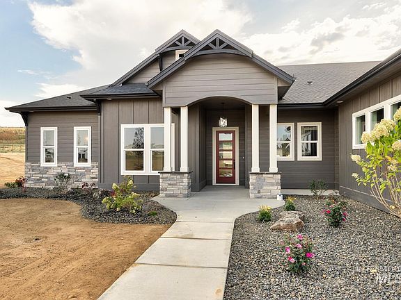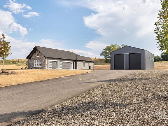 Just completed. Custom luxury home in the country that embraces the concept of open & versatile living with 4 bedrooms & 3 1/2 baths on a 5 acres with Shop. Entertainers will love the open concept & gourmet kitchen. The kitchen includes Bosch double ovens, drawer microwave, & 36" gas cooktop with huge pantry. Enjoy the large island with quartz. The vaulted great room looks out onto a large covered patio. Retreat to the master suite with large walk in shower, dual vanities, & freestanding tub, large WIC. Looking for a 2nd Master Suite or Rec Room, we have it? The secondary bedrooms enjoy a Jack & Jill bathroom. There is a pocket office. Lots of moldings, beams, & feature walls. 30'x40' Pole barn shop included. This home is located in the small sub of Triple H Estates north of Middleton. Easy freeway access. Large Animals welcome. Perimeter 3 Rail Fencing and landscaping. Home is staged. GPS 6350 El Paso, Caldwell, ID to locate sub more easily.