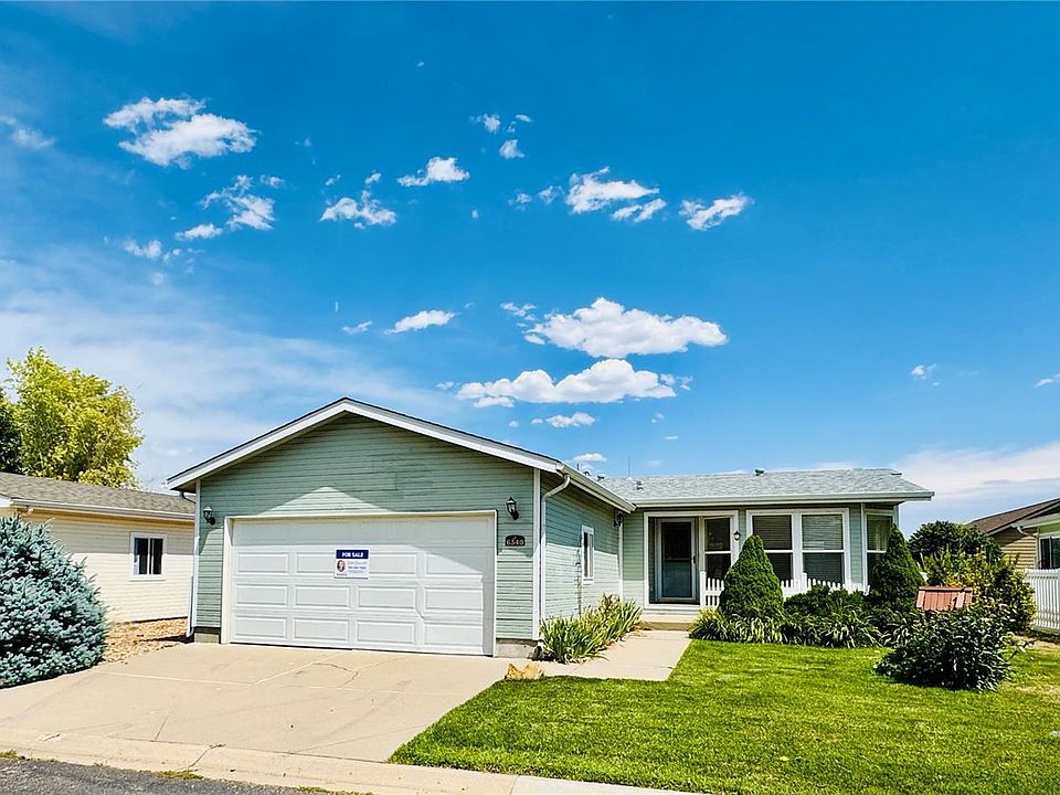 A large, lovely, open concept home nestled in one of the most sought-after locations in Frederick in the Prairie Greens community selling at an INCREDIBLE PRICE. This spacious 1,520 sq. ft. home boasts vaulted ceilings as well as an open floor plan that is a warm and inviting atmosphere perfect for entertaining. The home is very bright with tons of natural light throughout. The spacious primary suite features an oversized walk in closet as well as a bonus flex room off the primary that is PERFECT for a private office, nursery, theater room or overflow guest accommodations. BRAND NEW carpet throughout. BRAND NEW roof with Warranty. Oversized laundry room that is ready for additional storage or a freezer as well as a water leak alarm. All kitchen appliances included as well as the washer and dryer. Attached 2 car garage that features plenty of storage shelving and a secondary refrigerator. Landscaped yard, sprinkler system and a fenced private yard that is great for enjoyment and relaxing. There is extra guest parking space in the cul-de-sac. The Carbon Valley Parks & Rec Center is just a two minute drive and there is easy nearby access to various shopping and all that Frederick has to offer. You are purchasing the home only. This is a Land Lease community with a park, pool and clubhouse AND there is NO additional HOA. All adults in the home must be approved to live in the community. This community does allow rentals. Real estate loans WILL work for this home. Please contact the listing agent to schedule a showing as well as if you need any assistance connecting with a lender for this home. This home is ready to move in right away and call YOUR home while you build quick equity.
