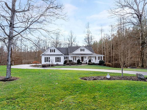 One level living, truly custom, meticulously maintained home carefully placed on 2+ acres with a winter mountain view. The first floor offers a morning room, great room with vaulted ceiling and brick fireplace, home office, dining room, primary bedroom with french doors leading to a screened-in porch, guest ensuite, and a full bath. Columns, custom trim, and hardwood floors showcased throughout. The kitchen boasts custom birch shaker style cabinets, solid surface counters, stainless appliances, gas cooktop, and large walk-in pantry. Large wrap around front porch overlooking a beautiful landscaped yard, spacious deck for entertaining and screened-in porch. Oversized garage, generator, security system, and architectural roof.
