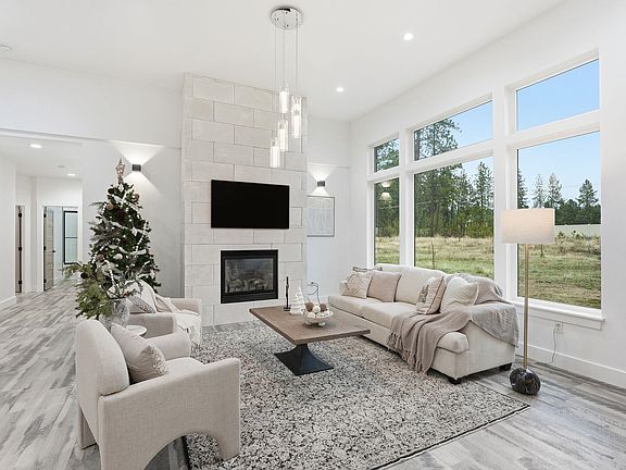 Where cozy meets luxury and effortless style! Set on a large 1.23-acre lot, this single-level retreat offers nearly 1,900 sq. ft. of elevated living, where custom finishes and thoughtful design shine throughout. Gather by the floor-to-ceiling stone fireplace beneath 12’ ceilings, surrounded by windows that fill the great room with natural glow. The chef’s kitchen is perfect for entertaining—featuring a waterfall-edge quartz island, gas cooktop, double ovens, and a generous walk-in pantry with built-in storage. The primary suite is a true escape with a spa-inspired bath, heated floors, soaking tub, tiled shower, and a custom-designed walk-in closet. Every detail impresses, from 9’ ceilings and a Bluetooth sound system to a tankless hot water heater. Outside, the expansive lot offers endless potential—space for a shop, pool, or horses and garden—creating the perfect setting to celebrate every season on your own private estate.