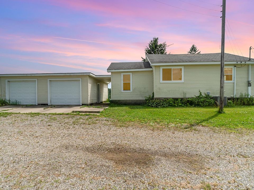 Nestled amongst neighboring farmland, this quiet country home, that's still close to town has so much to offer! There are 2 bedrooms, plus a den and features a large living space, basement, and 2.5 car garage. There's a galley style kitchen with wood cabinets that lead to your dining room. The large bedroom has double closets and built-ins above the closets. Outside you'll find two apple trees large driveway, and plenty of green grass to build out your garden or hobby farm! New owners will also enjoy a generator hook up, 5 year old well, root cellar, and an additional 40x60 outbuilding to house all of your toys or hobby farm equipment! The owners have also added a sump pump, and additional insulation. Note: the sellers plan to take the silos.