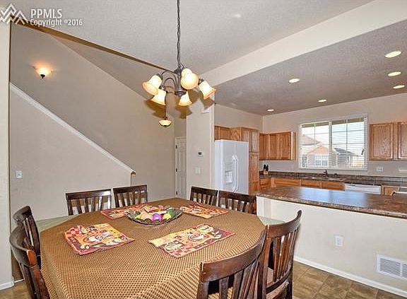 This nearly new home in D-3 has a fresh, open design, spacious eat-in kitchen w/pantry, 4 bedrooms upstairs, living room w/walkout to fenced backyard, 3 car tandem garage! Great curb appeal w/charming front porch. Central A/C & whole house humidifier. Fully landscaped w/automatic sprinkler system front & back, wonderful 10x24 patio off the living room. Unfin. basement offers great storage. Located in popular growing neighborhood near Powers Blvd and military bases.