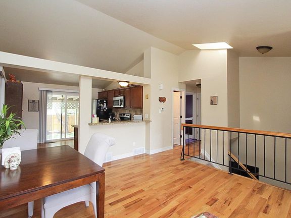 Remodeled ranch features a spacious eat-in kitchen with slab granite counters, stainless steel appliances, an inviting living room with gleaming hardwoods, vaulted ceilings, skylights, sun room, upgraded doors/trim, newer roof and windows, fenced yard. Close to parks, schools, and retail.