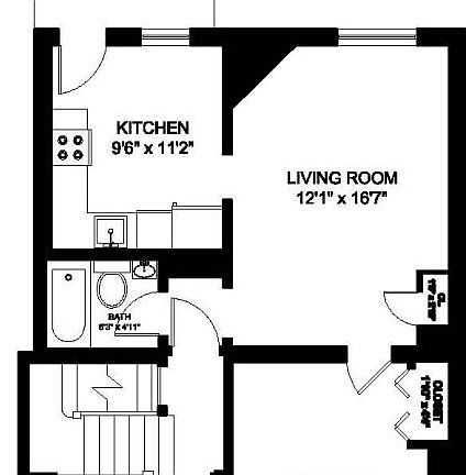 First-floor apartment located in a renovated Victorian house with wall-to-wall carpet; private deck and patio; stained glass windows in living room and bedroom; central air conditioning; modern kitchen with refrigerator, range, and dishwasher; high ceilings; ample storage and coin-operated laundry facilities in building. Resident is responsible for gas and electric.