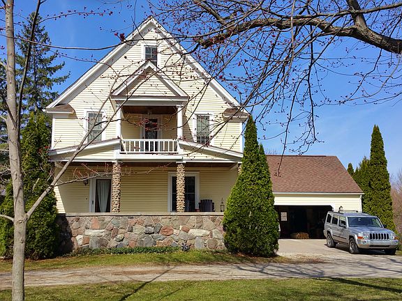 A rare combination of traditional charm & character coupled w/ a gorgeous 2 acre lot in a convenient location close to shops & freeway access. Enjoy country living (w/ rolling hills, fruit trees, creek, pole barn & separate outbuilding) & a well maintained 19th Century built home w/ gorgeous hardwood floors, wood trim & wood beams. Relax in the warm & inviting living room or in the formal dining room featuring an impressive wood-burning fireplace w/ stone surround. The kitchen has stainless appliances & a large pantry. Vinyl windows throughout. A/C has just been added. Don't miss the huge floored attic w/ incredible extra storage. All bedrooms are a generous size. The Master bedroom has an attached covered deck. The basement is part finished w/ 400 sqft of additional rec space. The attached 2.5 car garage w/ workshop area provides terrific space. The large 2-tier deck is surrounded by gardens and a new fence - sit back & enjoy the stunning views down to the creek & tree-line beyond.