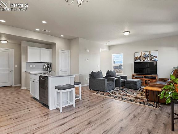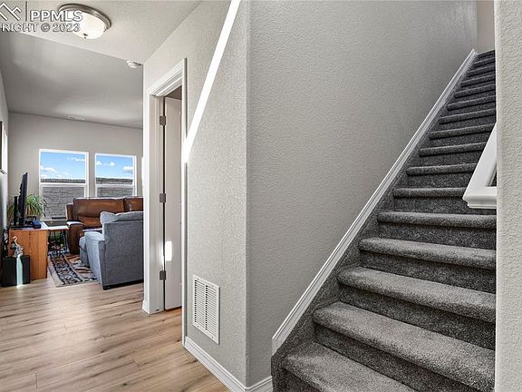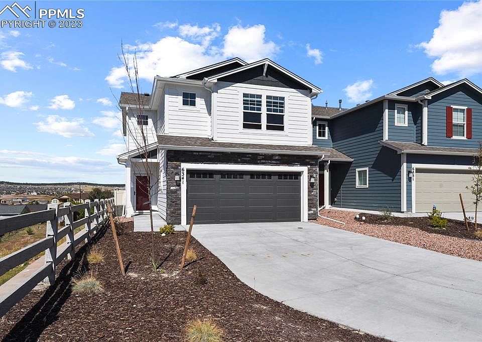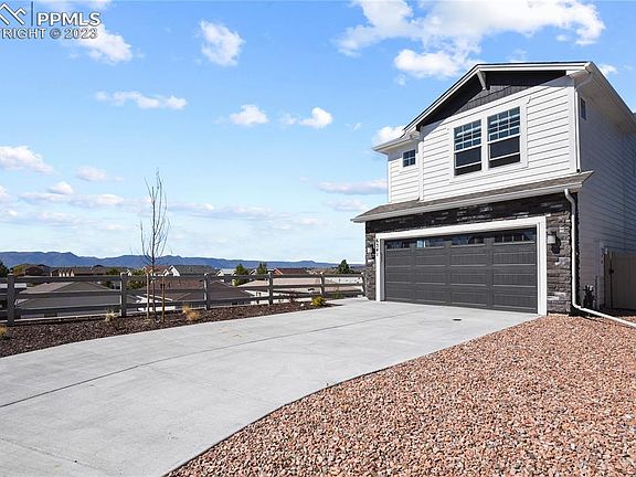 This beautiful low-maintenance two-story home features 1,653 sq. ft. of modern open living space. Upon entering from your 2-car garage, you will find a butler pantry before entering your open kitchen. The home has an open living room which provides easy access to the kitchen and dining area. The gorgeous kitchen has granite counter tops, including the island, a pantry, and plenty of cabinet space. Large windows allow in plenty of natural light. The Cape Town model features a spacious primary bedroom with an attached full bath with a free-standing shower, and a large walk-in closet. The second and third bedrooms are situated near another full bathroom and the laundry room. This home has nice mountain and Pikes Peak views. And there is a quaint enclosed yard for your best furry friend. Located close to the Powers corridor, enjoy plenty of shopping and restaurants. Take a look at the 360 degree tour. Then, schedule to view this wonderful home and make it yours.