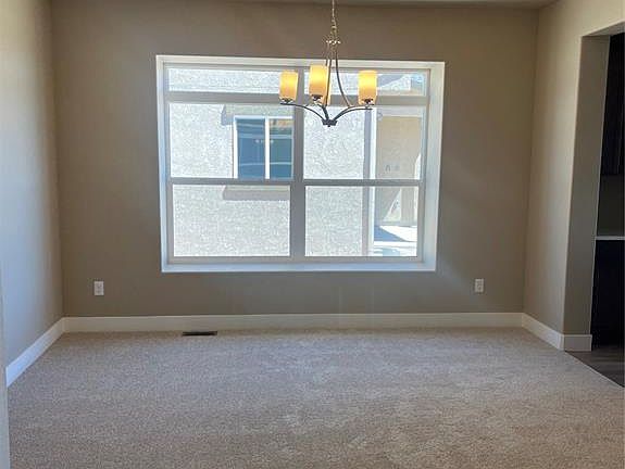 Gorgeous Ranch Home in the highly recognized Wolf Ranch neighborhood is ready to move in! This 2 bedroom, 2 bath, 2 car garage home with an unfinished basement is a perfect way to be in Wolf Ranch with room to grow. The Palazzo plan is a favorite for its open spacious feel. The stunning entry flows nicely into the formal dining and bedroom in the front and the kitchen is open to great room with fireplace, and dining nook with walk out covered patio. Kitchen features an upgraded Gourmet kitchen with granite countertops, GE Energy star stainless appliances to include gas cooktop, double wall ovens, microwave above range, dishwasher, upgraded designer staggered cabinetry, island with pendant lighting, walk in pantry and butler's pantry. The master suite has has sitting area with beautiful Pikes Peak views, walk in closet and adjacent 5 pc bath. The laundry is on the main level with an additional drop zone area. The unfinished basement with raised 9 ft walls allows for future expansion and includes a wet bar rough in. The ample windows and light in this home make it bright, open and airy! Additional features will include AC prep, laminate wood flooring in kitchen. This home was designed for performance and energy efficiency and has HERS score of 65! As a result, you should see savings on your utility bills. This home is located in Wolf Ranch Community offering access to open spaces, miles of trails, parks, recreation amenities, dog park with agility course, lake and fabulous mountain views. You will fall in love with this floorplan and neighborhood and all it has to offer at a price you can't pass up!