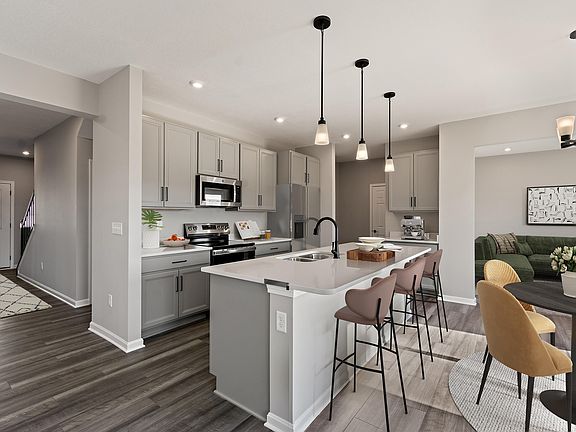 - Features: Breakfast Bar, Kitchen Island, Pantry, Wood Cabinets, Solid Surface Counters, Luxury Vinyl Flooring
