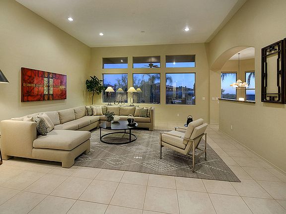 Stunning soft contemporary w/mountain, city & sunset views in desirable gated Pinnacle Ridge. Front courtyard entry, exquisite living room w/high ceilings, walls of dramatic picture windows, formal dining room, gourmet island kitchen w/granite countertops, gas stove top, refrigerator, double ovens, pantry, large family room, lovely breakfast area that opens to family room w/fireplace, beautiful tile flrs, 3 BR's+ study w/built in bookcases or 4 BR's, 4 baths including master w/sitting area, bath w/designer tile countertops, double sinks, garden tub, shower, 2 large walk in closets & private entry rear patio. Enjoy fabulous bkyd w/cov'd brick patio, pool, spa, BBQ, lush landscaping, 3 car garage, Dist.16 school & incredible city & mtn views. Floor plan under photos/virtual tour.