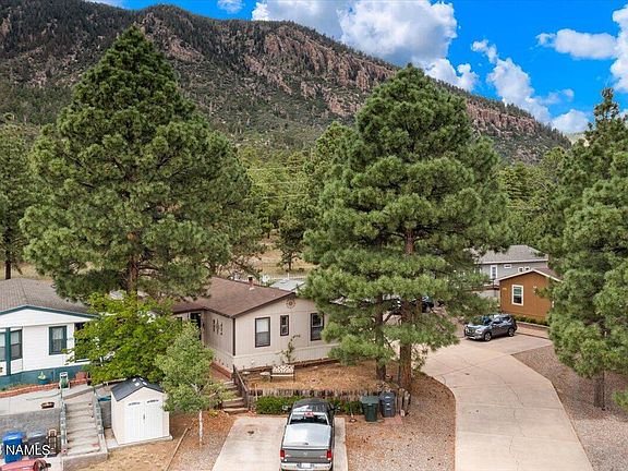 BACKS NATIONAL FOREST, stunning views of MT ELDEN and situated at the end of a private CUL DE SAC this spacious 3 bedroom/2 bath home would make the perfect primary or vacation home. Close proximity to trails, downtown, sunset crater, shopping restaurants and so much more! Open floorplan with wood stove, huge family room, vaulted ceiling and separate dining room. New dishwasher. Shed for additional storage.