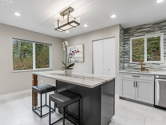 Modern fresh updates with territorial, mountain and city views! This home has been extensively remodeled, new luxury vinyl flooring, fresh paint through out, gorgeous complete renovation of kitchen and main bath. Gourmet kitchen showcases a custom built island with gorgeous Cambria quartz counter top, new SS appliances, custom tiled backsplash, organizers, slow shut shaker cabinetry, heated tile floors and pantry for additional storage. Primary bedroom has its own private bath and showcases the gorgeous views. Freshly updated main bath with extensive custom tile and heated flooring. The private patio off the family room lends to outdoor extended living space for enjoying with friends or taking in the tranquility of picturesque scenery. Enjoy the privacy of the upper end unit with views of nature through all windows! Washer and dryer in unit. Garage #19 included in the sale and additional storage off patio. Hoa amenities: Pool, Rec Center, Library, Workout room, Kitchen. Plenty of guest parking around the recreation area. Close to shopping, restaurants, Mary S Young park, bus line and all that charming West Linn has to offer.
