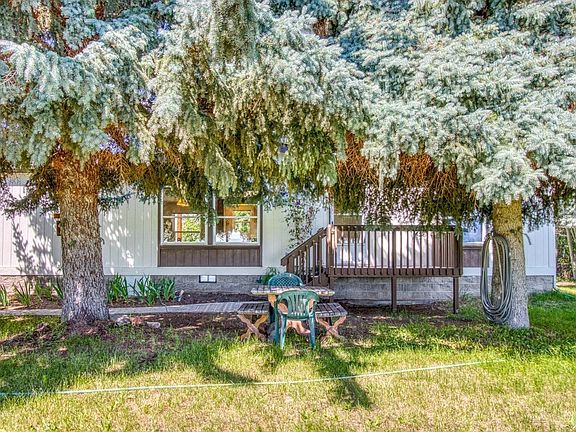 Beautiful piece of irrigated ground with double wide manufacture home that sits back off road for privacy!! A extra large garage with shop area is included. Private well with cistern for water, so your only bill is electricity. COID canal in back with old railroad car bridge to access back pasture and direct access to State & Blm property.