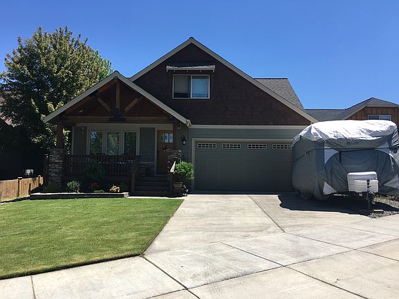 This charming, two-story craftsman home is conveniently located close to shopping and parks, just minutes from downtown Bend. With plenty of natural light, this beautiful home features a pass-through fireplace between the living and dining area, hardwood floors, an open kitchen and dining area with granite countertops, and a breakfast nook overlooking the spacious backyard. The gorgeous, light-filled master bedroom is on the main floor with sliding doors leading to the back patio, a walk-in closet, and a stunning master bathroom. The upper-level features two bedrooms and a large bonus room. The back patio has mature landscaping and natural gas available. This fantastic property includes a two-car garage, plus RV parking on the side of the driveway. With views of the Cascade Mountain Range from the front porch, moments from Rockridge Community Park, this gem in NE Bend is a must-see!