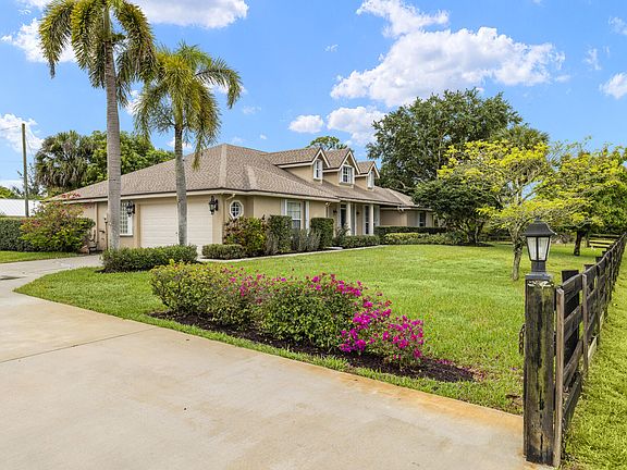 This is a great value for a single family home, on 1.25 acres, in the Acreage, that is on a paved road and close to RPB, shopping, and restaurants. When you tour, you'll find a 4 bed 2.5 bath home. One of the secondary bedrooms has it's own 1/2 bath ensuite. The interior main area has recently been painted and the lighting updated. There is wood plank tile throughout. The renovated kitchen is very large, with an island and opens to the family room. The master bedroom offers a large walk-in closet and a master bathroom with a tub and shower, Accordian shutters throughout and new hot water heater. The property is fenced and also offers a shed and a pond on the side yard. Quick closing available. Come see it today!