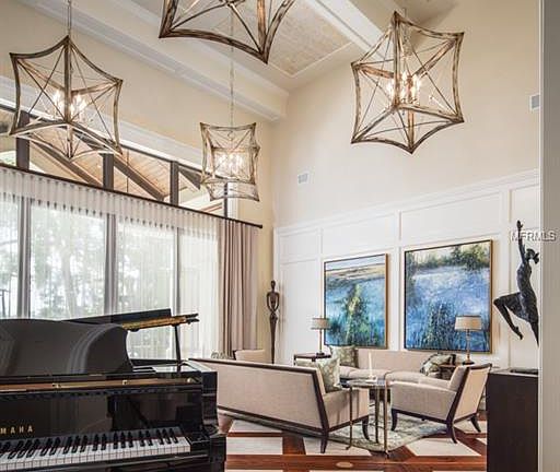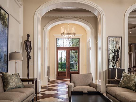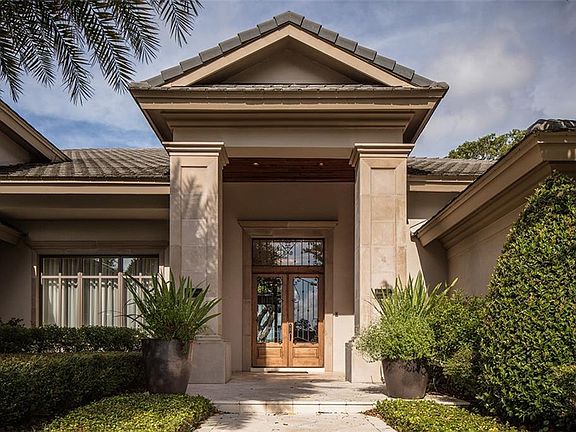 Nestled along the lake in the heart of Isleworth, this fully updated residence offers a prime location overlooking Lake Isleworth with direct access to the renowned Butler Chain of Lakes. The five-bedroom estate spans 7,008 square feet across two levels, with exquisite grounds and spacious outdoor living areas designed to maximize Florida lakefront living. Beyond its stately entry with solid stone columns and custom French doors with glass and iron detailing, the rich and open interior is flooded with natural light as dramatic windows draw your attention to the spectacular water views. Marble floors with wooden inlays pair perfectly with the ceiling detail that soars to over 20 feet in height. A gallery path separates this spacious formal living room from the formal dining room, which boasts a custom wine cellar positioned beneath the beautifully detailed grand staircase. The kitchen presents a feast for both the eye and palette alike with it's expansive center island, stamped copper backsplash and beautiful blend of cabinetry. Equipped with professional appliances, a walk-in pantry and an open breakfast nook, the kitchen overlooks the expansive living room highlighted by a towering stone fireplace, cathedral ceiling with wooden beams and floor-to-ceiling sliding glass doors that open for the ultimate indoor-outdoor living experience. The expansive grounds with a large and open lanai overlooking the sparkling pool, spacious sundeck, gas fire pit and private dock. The serene views are simply breathtaking.