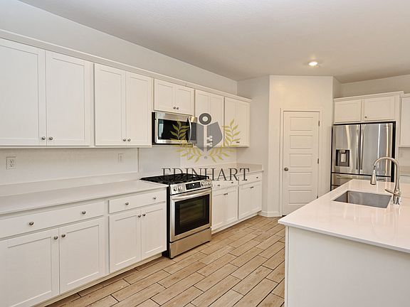 Welcome to this spacious two-story home in a serene community, designed with an open floor plan that's perfect for modern living and entertaining. The chef's kitchen is a standout feature, boasting an extra-large island ideal for seating, cooking, and baking. Premium finishes include quartz countertops, beautiful white cabinetry, complemented by stainless steel appliances, including a gas stove and a refrigerator. The spacious living and dining areas make the downstairs an entertainer's dream.