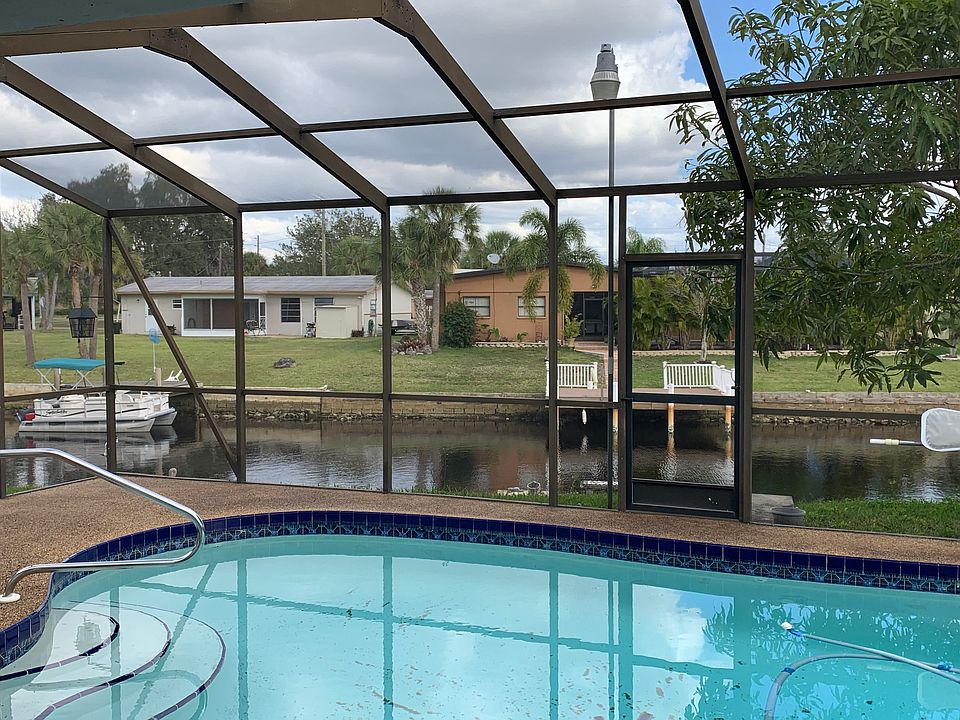 PRICE DROP SELLER SAYS MAKE AN OFFER! Are you looking for a great house with no HOA and no CDD fees? Congratulations! You've found it! Enjoy the serenity of a delightful a stunning waterfront canal home, with room to dock your vessel! Offering direct access to the Gulf of Mexico and Charlotte Harbor, or sit on your patio at watch the Dolphins and Manatee swim by. This renovated two-bedroom home features a bonus room that can easily be used as a 3rd bedroom, a separate den, laundry, and two full bathrooms. But wait; there's more: yes, an in-ground pool. Very recent improvements include the complete replacement of the old cast iron drainpipes in the foundation, new roof, new air-conditioning, and a complete remodeling of two bathrooms, kitchen, and dining room. The interior plumbing was updated in 2012, the exterior is freshly painted, and new tiles in service areas complete a comprehensive upgrade. This property will not last long on the market! Call to book your immediate home inspection!