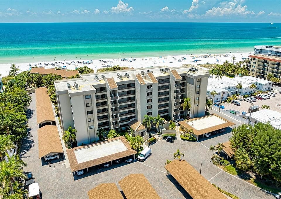 Rare Opportunity! Soak-up the sunshine! Retire, invest, or simply escape northern winters in this lovely Gulf-front condominium at the highly desirable Midnight Cove complex with fantastic views! Ideal second floor residence (elevator building) with 1400 square feet of living area! Updated baths, newer luxury vinyl in bedrooms, in-unit laundry and large spacious kitchen with loads of storage! This model offers above-average living areas, a full-span screened lanai with access from both the living and main bedroom areas and beautiful views of the Gulf of Mexico! Walk down to the community heated pool and powdery sands of Siesta Key in less than a minute! Weekly rentals make this community one of the most popular on Siesta Key and this unit includes a strong rental history. Assigned/covered parking, gated and secure and many additional amenities include fitness and game room, fishing pier, boat docks, tennis and community grill area with picnic tables. Relax on the beach with community provided loungers and umbrellas. Pet friendly complex allows owners to accommodate 2 large dogs. Boating and fishing on the bayside. Walk to many restaurants, water sports, shopping and night life. Don't miss this opportunity!