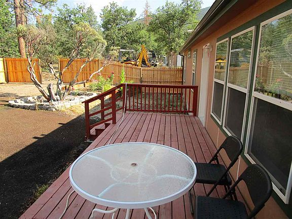You must see to appreciate this very private and secluded property with full fencing and an automatic gate. A lovely house on 4.2 acres, fenced, landscaped, and cheerfully open with decks front and rear for anytime enjoyment, plus a privacy back yard. You can relax in the master bedroom jacuzzi, or shower in the MBR shower. There is also a wood stove for those cold winter days when you like a homey fire. All landscaping and planted vegetation is irrigated with either a drip system or sprinklers, including several fruit trees. There is power and water to a future water feature should one be desired. The open floor plan and a super kitchen make this a very comfortable and desirable place for a couple or family to enjoy their home and their leisure or hobbies.