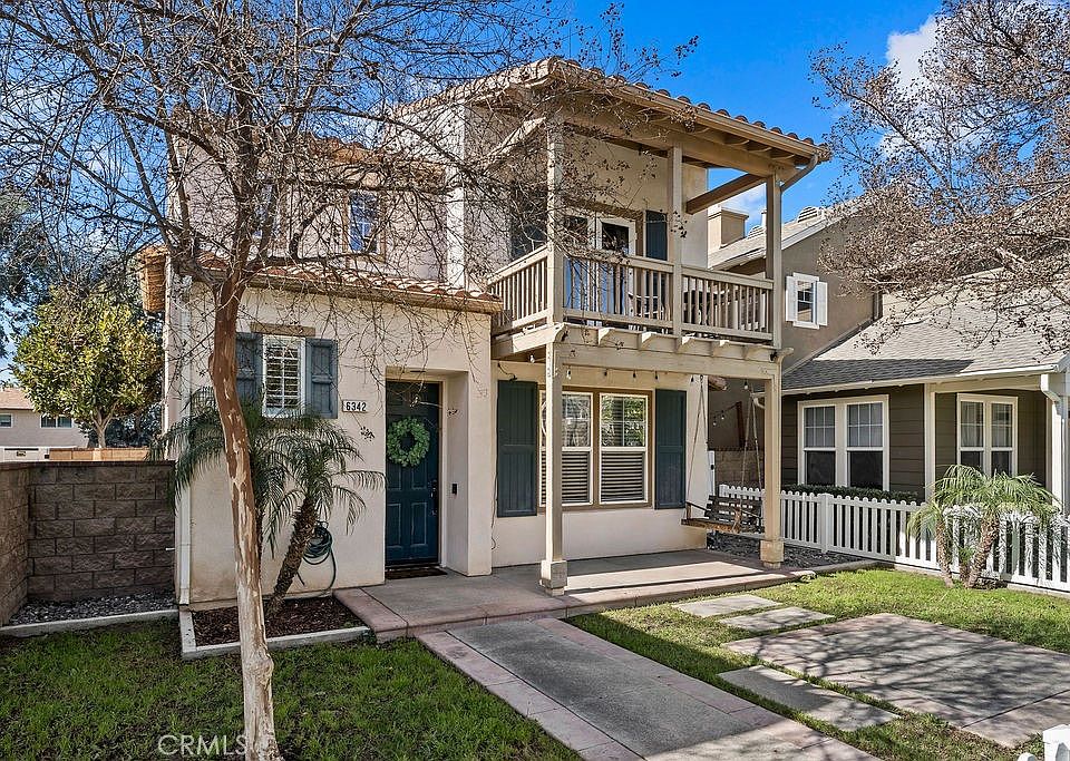 Beautifully upgraded home in the gated community of Liberty Square, ideally positioned in a coveted parkside location facing the community playground and greenbelt — perfect for enjoying outdoor living and neighborhood connections. The home features a charming white picket fenced yard, inviting porch, light-filled living room with fireplace, updated flooring, and new kitchen countertops. The kitchen also offers updated cabinetry, ample storage, generous counter space, and a dining area overlooking a private patio. Upstairs includes two spacious secondary bedrooms, laundry room, and a large primary suite with a recently remodeled bathroom featuring upgraded finishes, soaking tub, separate glass shower, and walk-in closet.