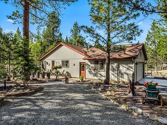 This 4 acre property in the Saddleback community is just minutes from Shevlin Park & Tumalo State Park. A private hideaway on Bend's Westside, the home and property are immaculately maintained, with well-crafted living spaces, inside & out. Vaulted main living area is highlighted by a wall of windows that immerses you in the manicured paths & native plants of these beautifully kept grounds. A spacious deck & patio provide that perfect spot for open air meals & festive gatherings. Thoughtfully placed windows enhance the connection with the world outside & allow natural light to flood in. Cozy gas fireplace, attached garage, kitchen with abundant storage, pantry & breakfast bar are just a few of the features here. From the master suite deck to the separate, shaded gathering place with custom made table & benches, there is a new way to appreciate your surroundings at every turn. Topped off with a 24x24, 3 wall pole barn for all your toys & gear, this little paradise has all you'll need!