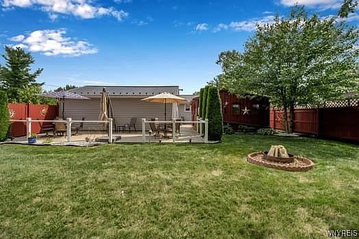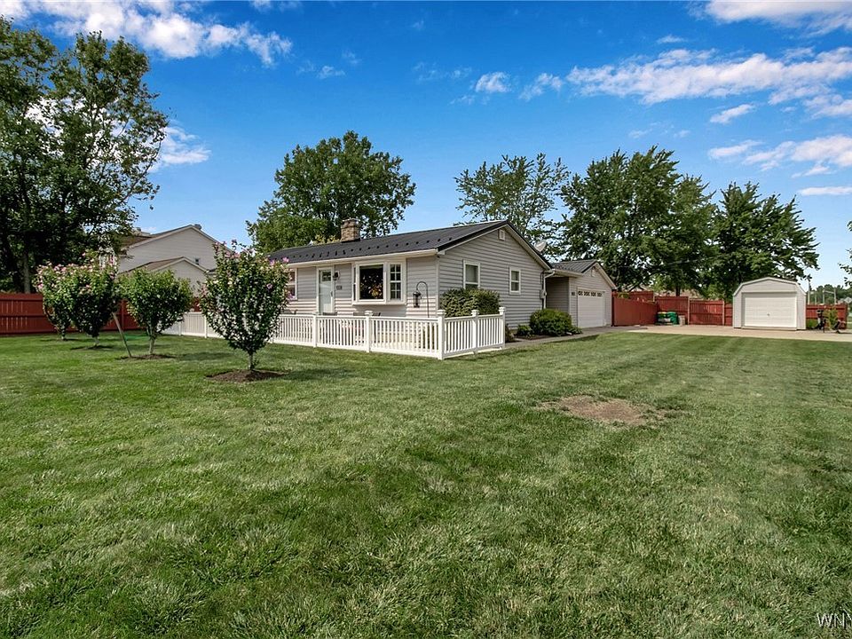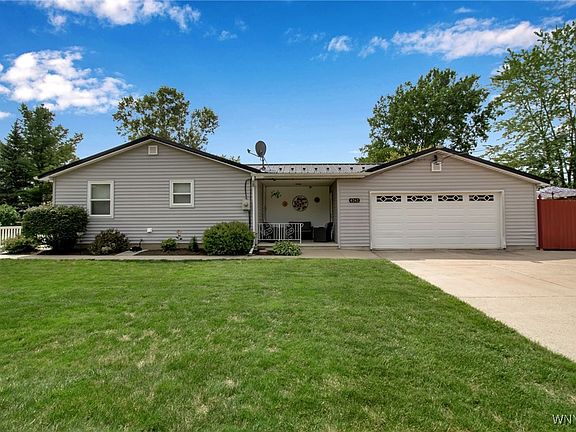 Welcome Home to this meticulous ranch in the Town of Lockport which offers highly sought after Starpoint Schools. This 1232 square ft., 3 bedroom, 1-1/2 bath home features first floor laundry, metal roof, gas furnace with wood auxiliary unit, glass block basement windows, ventless heater in the basement, newer kitchen cabinets, large front patio, stamped rear patio. The 1/2 acre sewered lot provides natural gas, water, cable, tons of extra parking area (concrete drive), and all the outdoor living features that anyone could want. All appliances will stay (including Speed Queen washer and dryer). Private security system with eight exterior cameras and the dvr will remain. One shed serves as a full one car garage with storage above. The second shed (red) offers a "man cave" appeal for fun and social gatherings! The window a/c remains. The main garage (2.5 cars) is extra deep, heated with gas, 220 line for welder, cupboards and rear door to patio. Excellent for auto enthusiast or any other hobbyist. Any contracts need to be contingent on owner finding acceptable housing. Offers are due Seotember 1st, at noon.