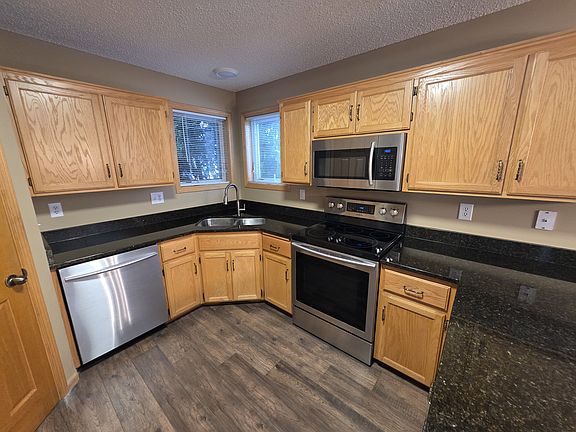 4 Bedroom 2 Full Bath 2 Story 2 bedrooms with walk in closets. Main floor laundry. Large Greatroom with vaulted cieling. 1819 square feet plus unfinished lower level adds additional 1000 square feet. 3 car garage. Deck New carpet and blinds Mannington laminate floors Fresh paint Granite countertops 6 panel solid doors. Stainless steel appliances Additional unfinished lower level. Super clean. Renter is responsible for gas. electric, water. trash and yard maintenance