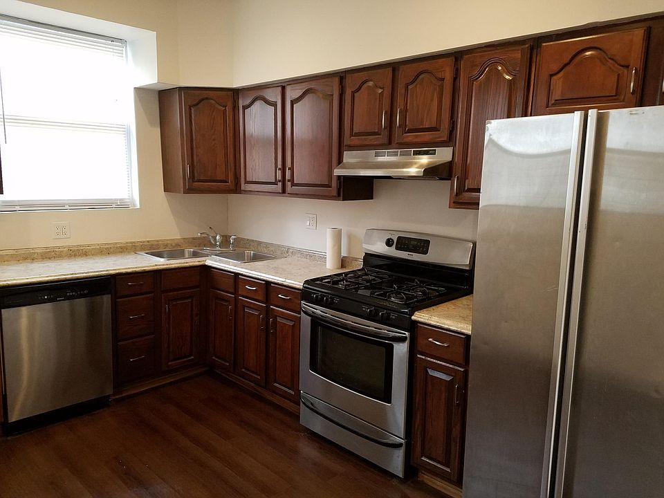Enjoy this beautifully remodeled home with 3 bedrooms and 1.5 bathrooms located in Elmwood area and is very accessible to public transportation. - Large enclosed porch - Living room with hardwood floor - Spacious dining room with hardwood floor - Dine-in kitchen including stainless steel oven dishwasher refrigerator and counter/cabinet space - Sizable bedrooms (3) with good closet space - Full bathroom on 2nd floor and half bathroom on the 1st floor - Fenced-in patio backyard - Full-length semi-finished basement that offers huge space for storage - Washer/dryer The house is move-in ready. Application fee is 35 and for move-in the first month rent last month rent and security deposit are required. Rent is 1100/month and tenant is responsible for ALL utilities. Background check proof of income and good credit score will required to move in. I look forward to hearing from you! One year